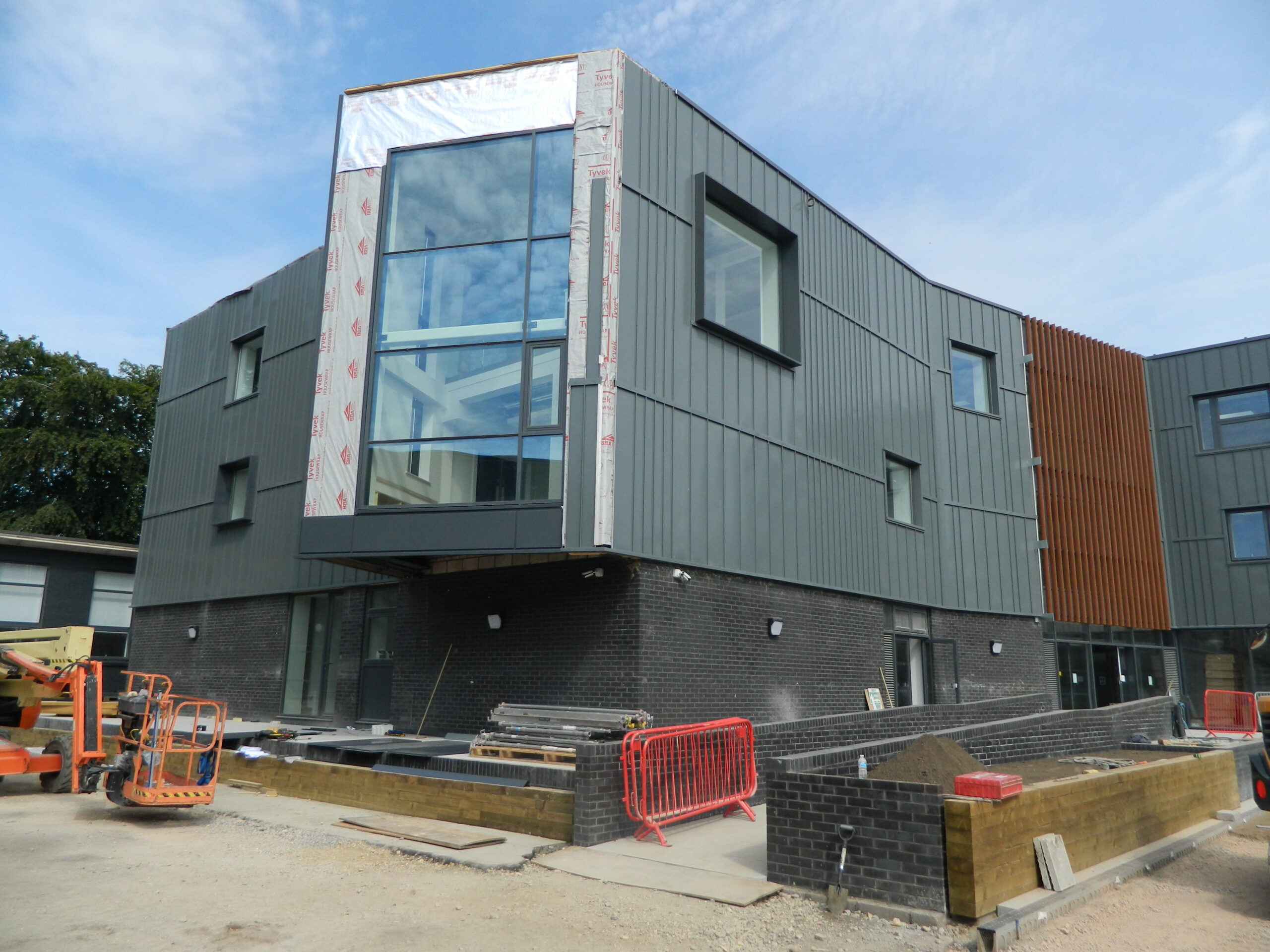 The building was designed as a steel frame with composite, profiled metal deck floors and a ground bearing slab with extensive detailing around facades, exposed steelwork connections and the high/low level interfaces.