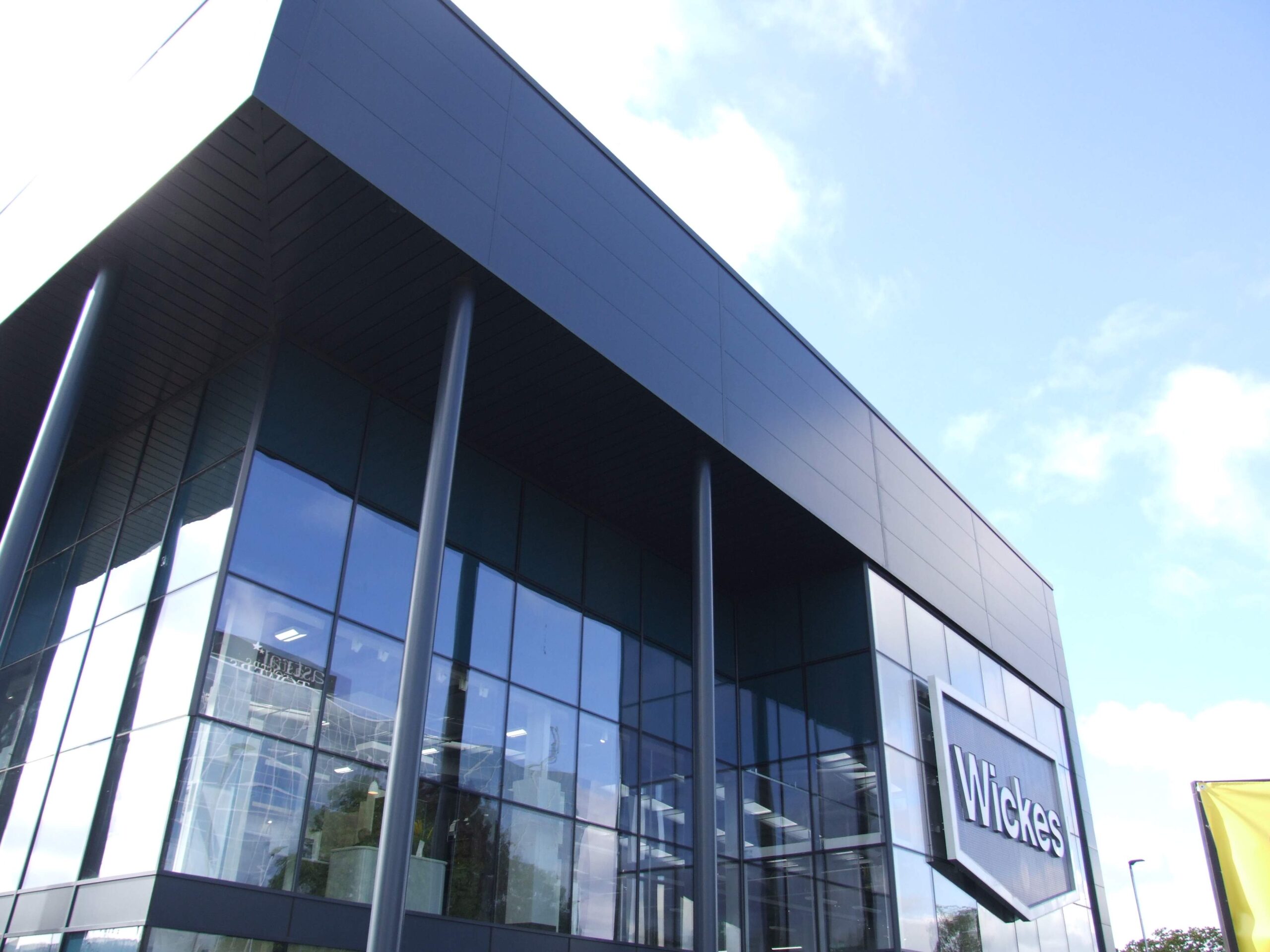 Works comprised of the construction of a new flagship outlet for Wickes, located in the heart of the retail sector in Crawley. With its modern glazed façade and unique architectural parapets the style of the branch was a first for Wickes and required value engineering to bring the scheme within the clients budget.